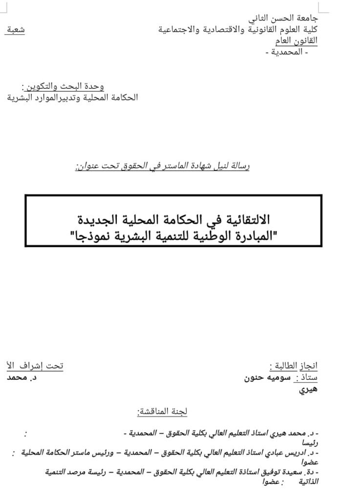 الالتقائية في الحكامة المحلية الجديدة المبادرة الوطنية للتنمية البشرية نموذجا
