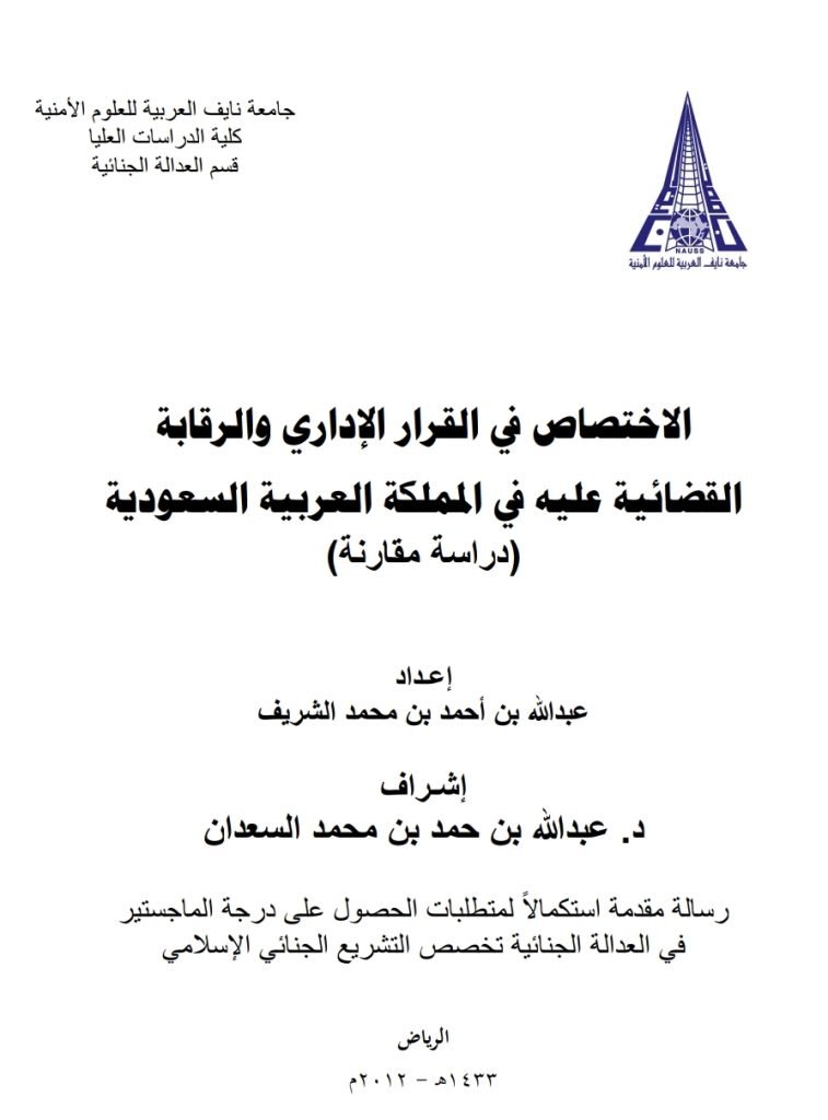 الاختصاص في القرار الإداري والرقابة القضائية عليه في المملكه العربية السعودية (دراسة مقارنة)